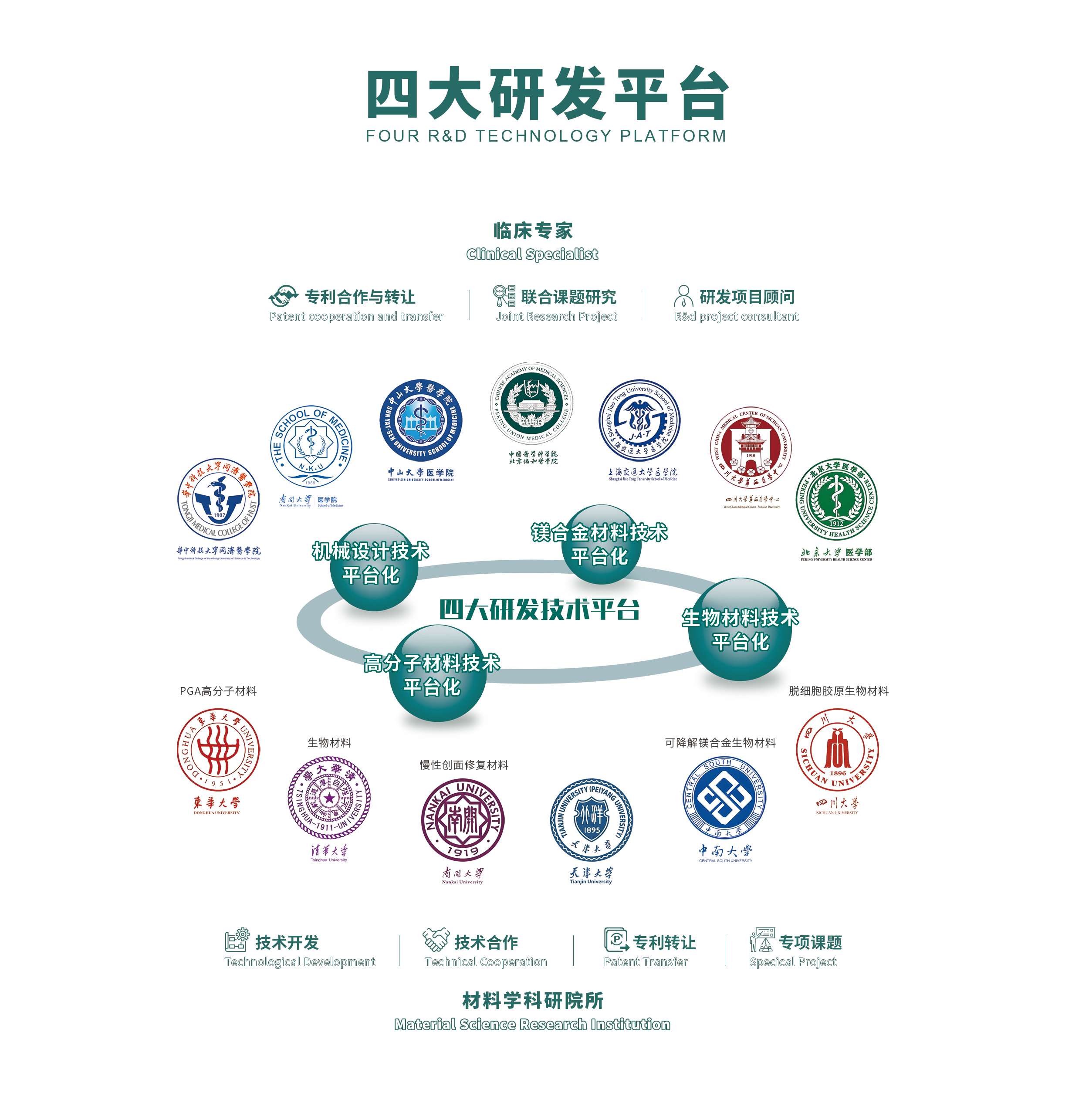 集团研发中心坐落于天津滨海新区,拥有国际领先的生产研发设备以及由医学、工程和科技领域的顶尖专家组成的研发团队。我们专注于材料、技术的创新,着眼于国内市场中尚未得到满足的需求,并以此为动力在显微外科、大外科、心外科、创新生物材料等多个领域进行创新研究和探索,力图突破传统医疗器械的局限性,填补国内医疗器械领域空白,为行业带来革命性突破。
